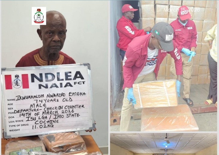 Ikwuakalom Nwakoro Emeka, a 74-year-old grandfather, was taken into custody by the National Drug Law Enforcement Agency (NDLEA) at the Nnamdi Azikiwe International Airport (NAIA), Abuja, following the discovery of a sizable cocaine shipment in foil papers and balloons hidden in his luggage.